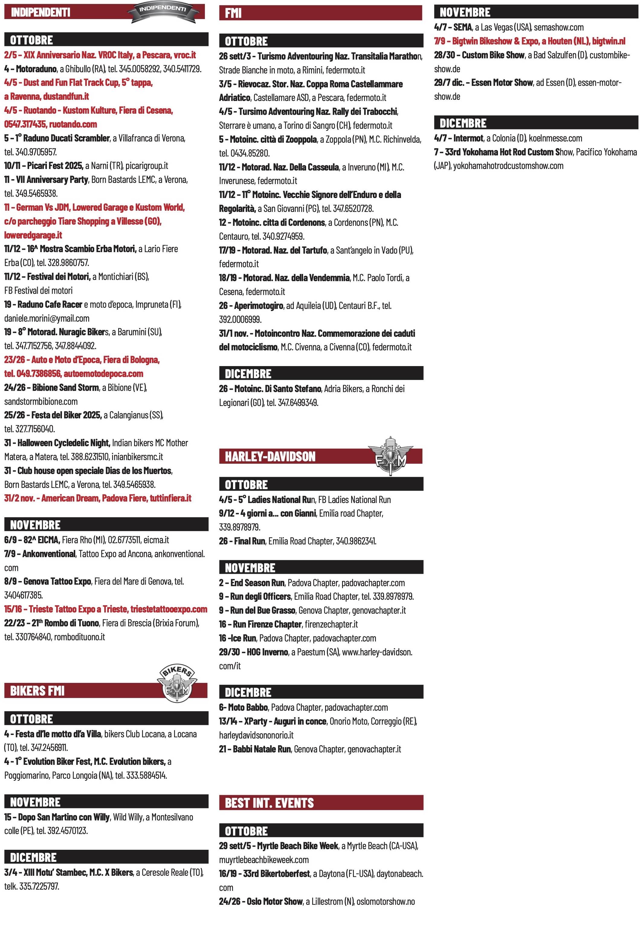 Se sei interessato a veder pubblicato il tuo evento/raduno nel calendario eventi della rivista invia il materiale a: articoli@bikerslife.com